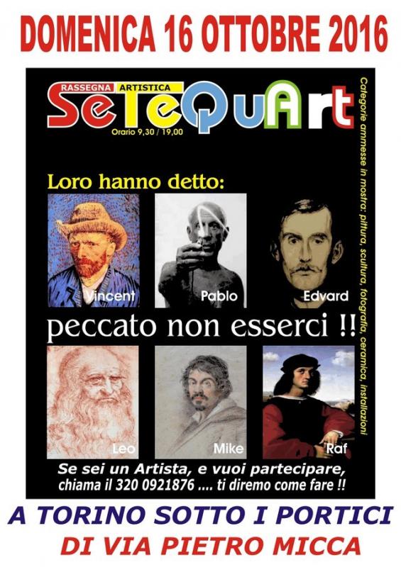 Domenica 16 ottobre sotto i meravigliosi portico di Via Pietro Micca dalle ore 10 alle 19 si terrà la Rassegna SeTeQuArt dedicata alle arti Visive.