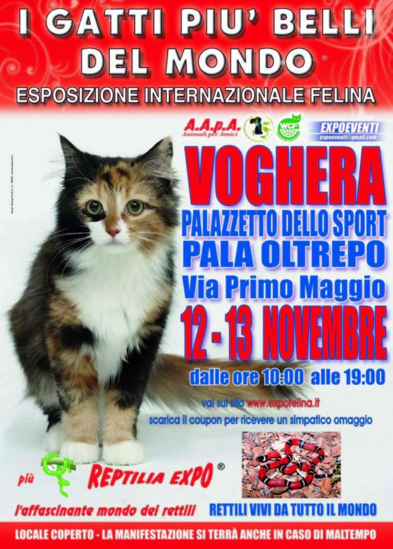 I GATTI PIU' BELLI DEL MONDO si possono ammirare all'Esposizione Internazionale Felina che si svolge a VOGHERA (PV) dove gatti di razza provenienti da tutta Europa si contenderanno il titolo per l'assegnazione di "gatto più bello del mondo" al Palazzetto dello Sport Pala Oltrepo di Via Primo Maggio nelle giornate di sabato 12 e domenica 13 Novembre.