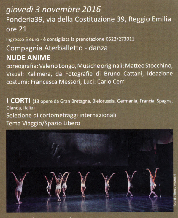 Giovedì 3 Novembre le fotografie di Bruno Cattani faranno da sfondo a "Nude Anime", una coreogrrafia creata da Valerio Longo per la compagnia di danza Aterballetto.