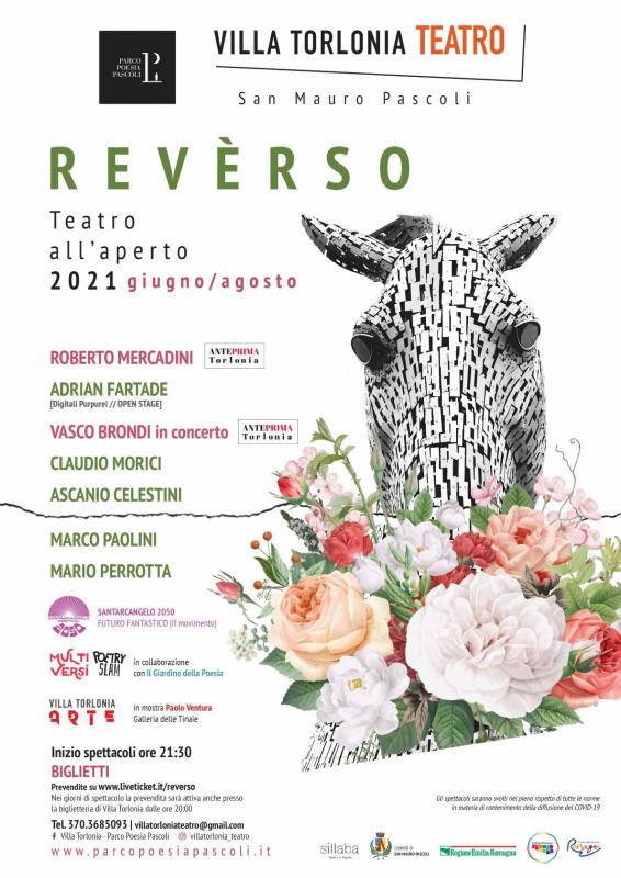 Revèrso e la stagione estiva di Villa Torlonia Teatro sono curati da Sillaba Soc. Coop. con il contributo del Comune di San Mauro Pascoli e della Regione Emilia-Romagna.