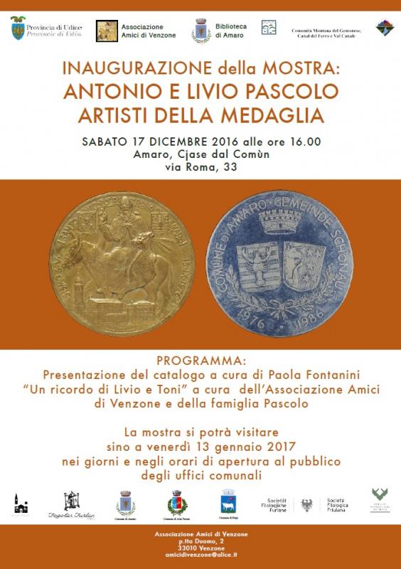 La mostra dedicata ad Antonio e Livio Pascolo, medaglisti e incisori di Carnia, vuole essere un riconoscimento a due artisti fantasiosi e capaci, ma altrettanto modesti e riservati.