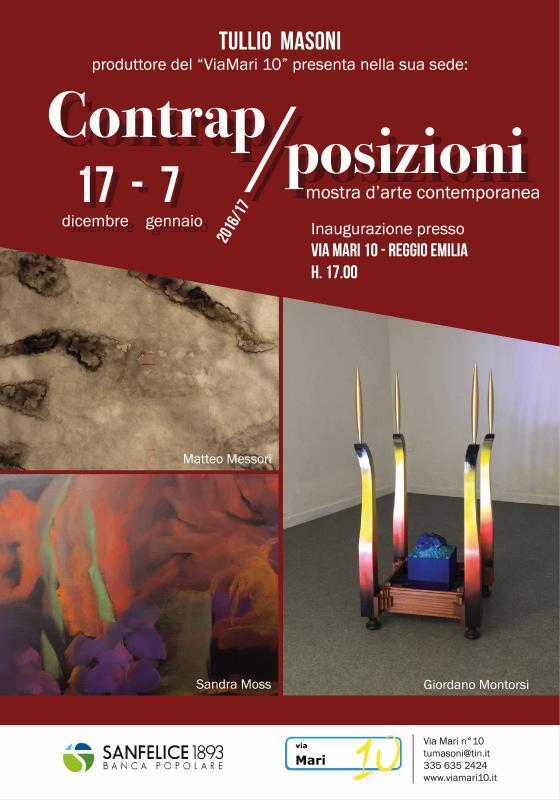 “Contrapposizioni” è il titolo del progetto, che raccoglie una selezione di dipinti, sculture ed installazioni site-specific realizzate dai tre artisti, differenti per esperienza, provenienza e linguaggio, ma accomunati dalla ricerca di tipo concettuale e da una gestualità ampia ed articolata.