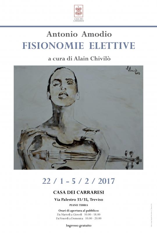 In questo luogo principe della cultura caratterizzante la Marca Trevigiana ma non solo, l'artista nativo di Verona instaura attraverso le sue opere un dialogo atto a delineare diversi modi di percepire il volto, in occasione della mostra dedicata a Francis Bacon che con la dicitura «un viaggio nei mille volti dell’uomo moderno» evidenzia e riassume attraverso la poetica del pittore di Dublino infiniti stati dell’essere. Il titolo della personale “Antonio Amodio Fisionomie Elettive”, a cura del critico e curatore d’arte Alain Chivilò, avvicina ma contemporaneamente allontana i percorsi dei due artisti. Laddove Francis Bacon inserisce due personalità all’interno del suo ritratto per raggiungere una maggiore intensità espressiva delineando maggiormente la fragilità dell’essere umano, Antonio Amodio fa propria la definizione del termine fisionomia cercando di carpire quell’espressione del viso che si genera «dai lineamenti e dal loro atteggiarsi».