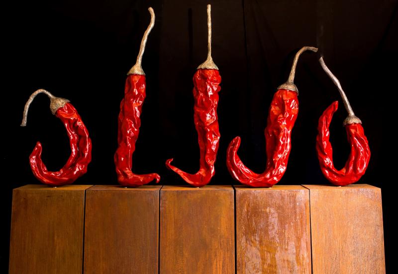 “Dalla pittura a olio, di cui è vertiginoso interprete attraverso una particolare forma di realismo – scrive il curatore Luca Beatrice – Giuseppe Carta affronta ora lo spazio pubblico dell’arredo urbano con la scultura di grandi dimensioni, confrontandosi con una delle piazze più suggestive d’Italia. I suoi peperoncini rossi, atterrati come alieni mansueti a Pietrasanta, riscaldano l’ambiente e il cuore. Più che mai il potere afrodisiaco dell’arte colpisce nel segno. La regia di Alberto Bartalini, eccentrico produttore di idee, arricchisce un allestimento onirico e surreale”.