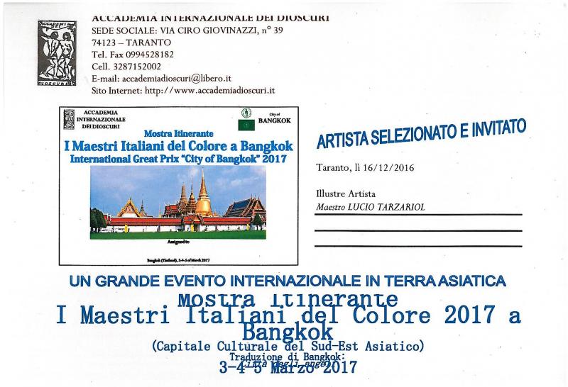 LUCIO TARZARIOL ESPONE PRESSO LA SILPAKORN UNIVERSITY DI BANGKOG IN OCCASIONE DELLA MOSTRA: "I Maestri Italiani del Colore 2017"