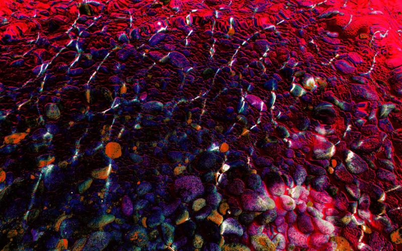 Sono inoltre presenti richiami evidenti al mondo reale sempre filtrato da un velo d’acqua come avviene in Montagne estive, dove si scorge attraverso una sorta di visione satellitare un paesaggio montano o in Ponza’s flowers dove macchie di colore amaranto evocano un tappeto di fiori adagiati su un prato.