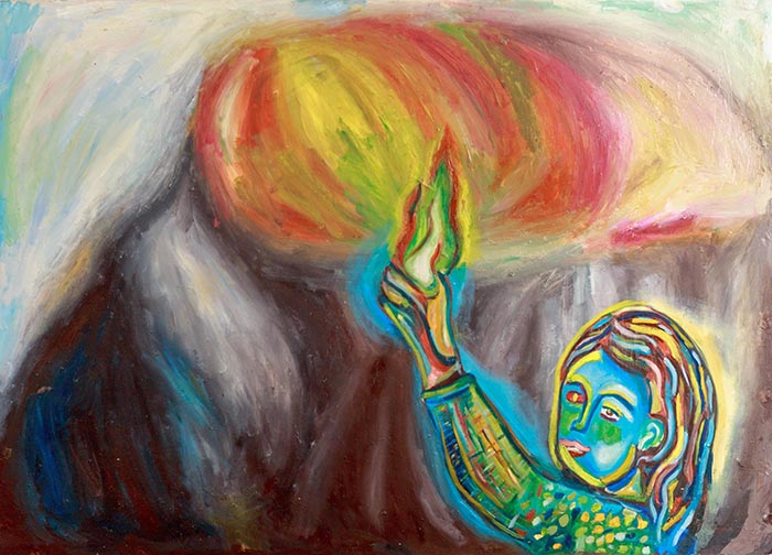 Nelle pitture di Sario il dipinto deve dare spazio essenzialmente al colore.