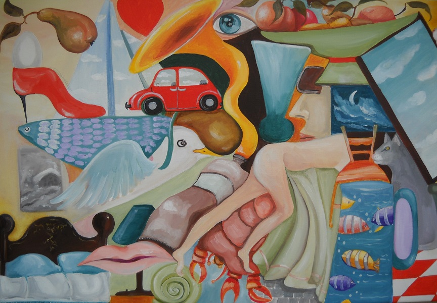 La mostra di Rivodutri è l’occasione per intraprendere un viaggio nel suo mondo o meglio, come ama definirlo l’artista, nel suo wonderfulworld: nei suoi lavori, infatti, c’è posto per tutto e per tutti e, misteriosamente, tutto sembra esattamente dove deve essere. Così non domandatevi il nesso fra un pesce preistorico, una caffettiera e una sirena: la risposta è nella meraviglia con cui l’artista guarda a tutte le manifestazioni della vita e nella forza creativa con cui sa restituirceli.