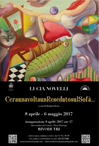 Il Comune di Rivodutri nell’ambito del progetto Rivodutricontemporanea promuove dall’8 aprile al 6 maggio 2017 presso la Sala Consiliare in piazza Municipio, la mostra ‘CeraunavoltaunResedutosulSofà’, di Lucia Novelli, a cura di Barbara Pavan.