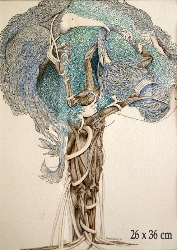 Nel grande panorama di possibilità espressive che la cultura del ‘900 ha offerto, l’artista ha attinto istintivamente, ritenendola consona con il proprio sentire, all’intonazione surrealista, che l’accompagna nel travalicare il reale verso una liberazione dell’inconscio dagli incubi e dai dubbi, un percorso condiviso da note sensuali e delicate al tempo stesso. Che ci rimanda agli antichi bestiari di ascendenza medievale, ma anche alle creature fantastiche dipinte fra il ‘400 e il ‘500 dal fiammingo Hieronymus Bosch, rivisitate con algida chiarezza. E alle immagini cinquecentesche, affastellate di dettagli, dell’aristocratico, ma più solare Arcimboldo. Un mix, l’universo della Schoss, fra nitore, sofisticata freschezza e armonia tonale e cromatica, mistero, attaccamento e timore della maternità, fine segno grafico; paura della solitudine e intreccio, cioè abbraccio.