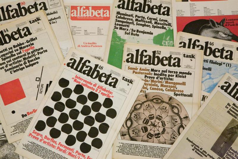 Pubblicata a Milano dal 1979 al 1988, su iniziativa del comitato di redazione composto da Nanni Balestrini, Maria Corti, Gino Di Maggio, Umberto Eco, Francesco Leonetti, Antonio Porta, Pier Aldo Rovatti, Gianni Sassi, Mario Spinella e Paolo Volponi, "Alfabeta" era l'espressione di un gruppo di intellettuali diversi per formazione e interessi personali, accomunati dall'attiva partecipazione al discorso culturale, sociale e politico degli anni Sessanta e Settanta, e successivamente uniti nella riflessione sul come poter svolgere il proprio ruolo nella società "ideologicamente confusa" dei primi anni Ottanta.