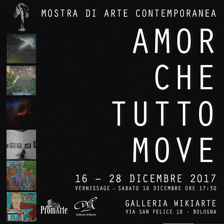 PromArte dedica la sua prossima mostra al tema dell'Amore. “Amor che tutto move”, questo il titolo della collettiva di arte contemporanea che sarà ospitata dalla Galleria Wikiarte di Bologna dal 16 al 28 dicembre 2017.