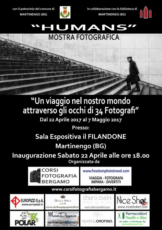 Il progetto "Humans" consiste in una esposizione fotografica collettiva di foto che raccontano il viaggio attraverso gli occhi di fotografi affermati ed esordienti, dentro il nostro mondo.