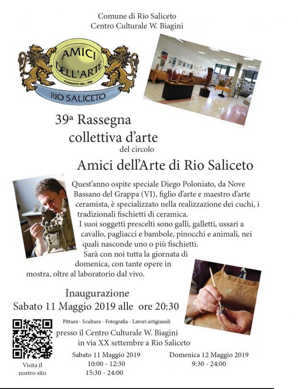 Nei giorni 11 e 12 Maggio 2019, presso il Centro Culturale W. Biagini, si tiene la 39^ Rassegna collettiva del circolo Amici dell’Arte di Rio Saliceto: pittura, scultura, fotografia, lavori artigianali.