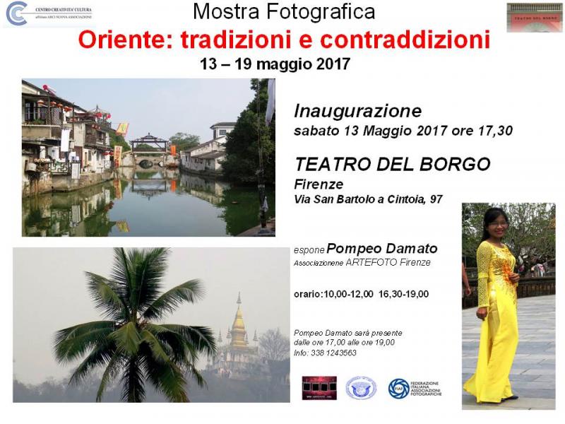Il Teatro del Borgo, in collaborazione con l'associazione ARTEFOTO di Firenze, è lieto di invitarvi all'inaugurazione di una mostra fotografica sul tema dell'Oriente, sabato 13 maggio dalle ore 17.30.
