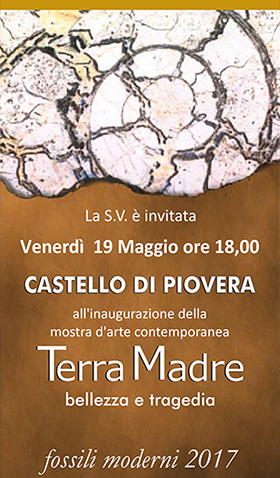 Sono le antiche scuderie del Castello di Piovera ad ospitare l’ edizione 2017 di Fossili Moderni, mostra di arte contemporanea che quest’ anno ha il tema “Terra Madre – bellezza e tragedia” ; la rassegna espositiva, curata dal Conte Niccolò Calvi di Bergolo e Giuseppe Castelli, inaugura venerdì 19 maggio alle ore 18. Realizzata in collaborazione con l’ Associazione Culturale Il Gufo, il Comune e la Pro Loco di Piovera, ha il coordinamento del progetto di Maria Rosa Arlandini.