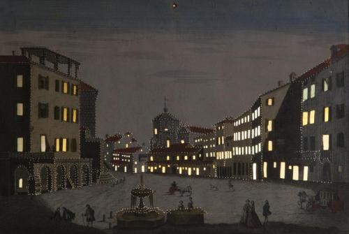 Ad un primo sguardo le incisioni vi potranno sembrare delle classiche vedute di piazze e palazzi di città italiane ed europee, ma questa collezione ha qualcosa di speciale: quando la sala sarà al buio, e le vedute ottiche saranno retroilluminate, le incisioni improvvisamente vi sembreranno delle vedute notturne.