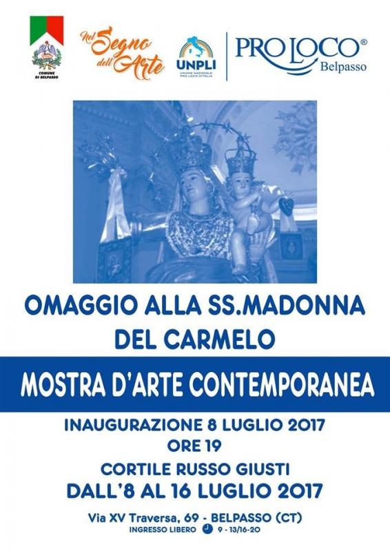 L'inaugurazione della Mostra d'Arte Contemporanea "Omaggio alla SS.Madonna del Carmelo" si terrà Sabato 8 Luglio 2017 presso il Cortile Russo Giusti, via II Retta Levante, 177 Belpasso (CT) a cura della Pro Loco di Belpasso.