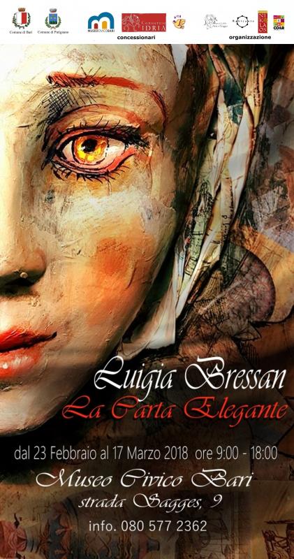 Pittrice, scenografa ed esperta nell’Arte della Cartapesta, Luigia Bressan vive e lavora a Putignano (Ba). Avviato il suo percorso artistico come pittrice con uno stile figurativo e con particolare propensione all’illustrazione e al disegno a penna, nel 2000 si avvicina al mondo della cartapesta affiancando, per nove anni, il maestro cartapestaio Franco Giotta nell’ideazione e realizzazione di carri allegorici. Da anni collabora con diverse compagnie teatrali nella progettazione di maschere, scenografie e burattini. Nel 2010 la sua cartapesta inizia ad intrecciarsi al mondo della moda e a salire in passerella, dapprima con estrose maschere-cappello, in seguito con eleganti abiti realizzati interamente in cartapesta e indossati dalle modelle. Nel 2011 Luigia Bressan crea a Putignano una mostra di corsetti realizzati interamente con questo materiale dal titolo “Moda e Cartapesta”.