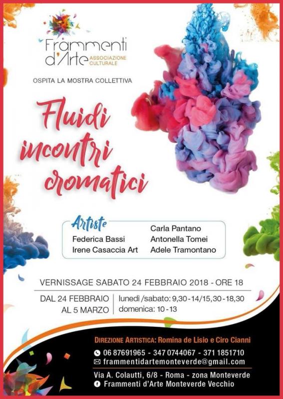 Mini collettiva 5 artiste espongono "Fluidi incontri cromatici". Vernissage sabato 24 Febbraio ore 18.00 presso la galleria Frammenti d'arte Monteverde Vecchio.