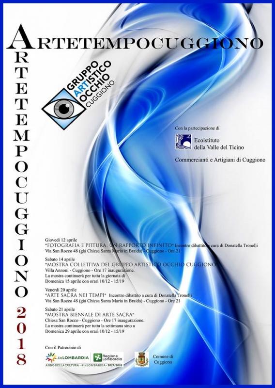 E' tempo d'arte. Ecco la nuova iniziativa del Gruppo Artistico Occhio. ARTETEMPOCUGGIONO 2018 propone, nel mese di aprile, appuntamenti dedicati alla Fotografia, alla Pittura e alla Scultura. In un unico contenitore culturale sono stati raggruppati gli appuntamenti con la "Collettiva" di gruppo e la biennale "Mostra Arte Sacra". Previsti inoltre dibatti a cura della D.sa Tronelli. Durante il periodo, i Commercianti e gli Artigiani di Cuggiono ospiteranno presso le sedi delle loro attività alcune opere del Gruppo Artistico Occhio.