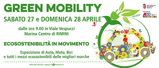 SAbato 27 e domenica 28 aprile 2019 torna a Rimini Green Mobility, esposizione di auto, moto e mezzi elettrici e ibridi.