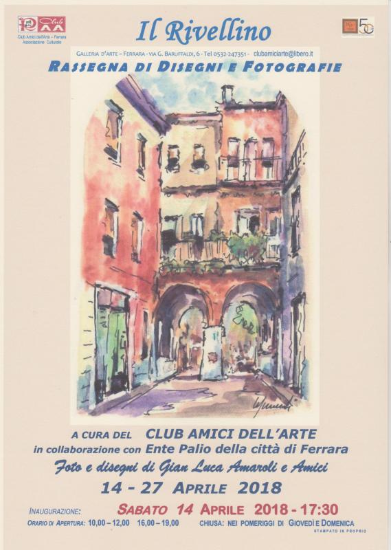 Sabato 14 marzo, ore 17,30, alla Galleria "il Rivellino" di via Baruffaldi 6 Ferrara, sarà inaugurata una rassegna di fotografie e disegni, per ricordare alcune attività fra le più significative del Club Amici dell'Arte. Ideata e curata da Gian Luca Amaroli, che ha raccolto foto e disegni a partire dagli anni '90, la " Rassegna " ha trovato spazio, con il patrocinio dell'Ente Palio cittadino, tra due importanti date della cultura cittadina: la nomina onorifica a 1° Duca di Ferrara di Borso d'Este (14 aprile 1471) e il 50° anniversario dalla rinascita del Palio, avvenuta il 28 aprile 1968.