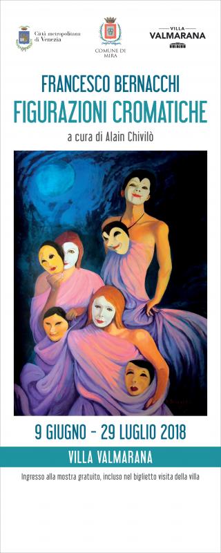 A un anno dalla morte del pittore Francesco Bernacchi, grazie anche al sostegno della moglie Maria Luisa Bardini, delle figlie e degli eredi, una ventina circa di opere selezionate sono esposte per la prima volta nella splendida e storica Villa Valmarana a Mira. Il titolo “Figurazioni Cromatiche”, elaborato dal critico e curatore d’arte dr Alain Chivilò, omaggia l'iter artistico del maestro toscano (Pontedera 1930 - Rosignano Marittimo 2017), fornendo una disamina su come il pittore toscano abbia unito alla Medicina gli approfondimenti sull’arte tra otto e novecento. Grazie al curatore Chivilò l'arte contemporanea dialoga con il Seicento, all'interno di un rapporto mai provocatorio. Per l'occasione è stato redatto un catalogo, "Naturalismo Magico”, pensato sia per il presente evento espositivo, sia per quello dell’anno prossimo al Castello di Zumelle. Grazie al contributo critico di Alain Chivilò e all'entusiasmo degli eredi, la monografia evidenzia dal punto di vista storico l’opera di Francesco Bernacchi all’interno di una strutturata pubblicazione edita per la prima volta.