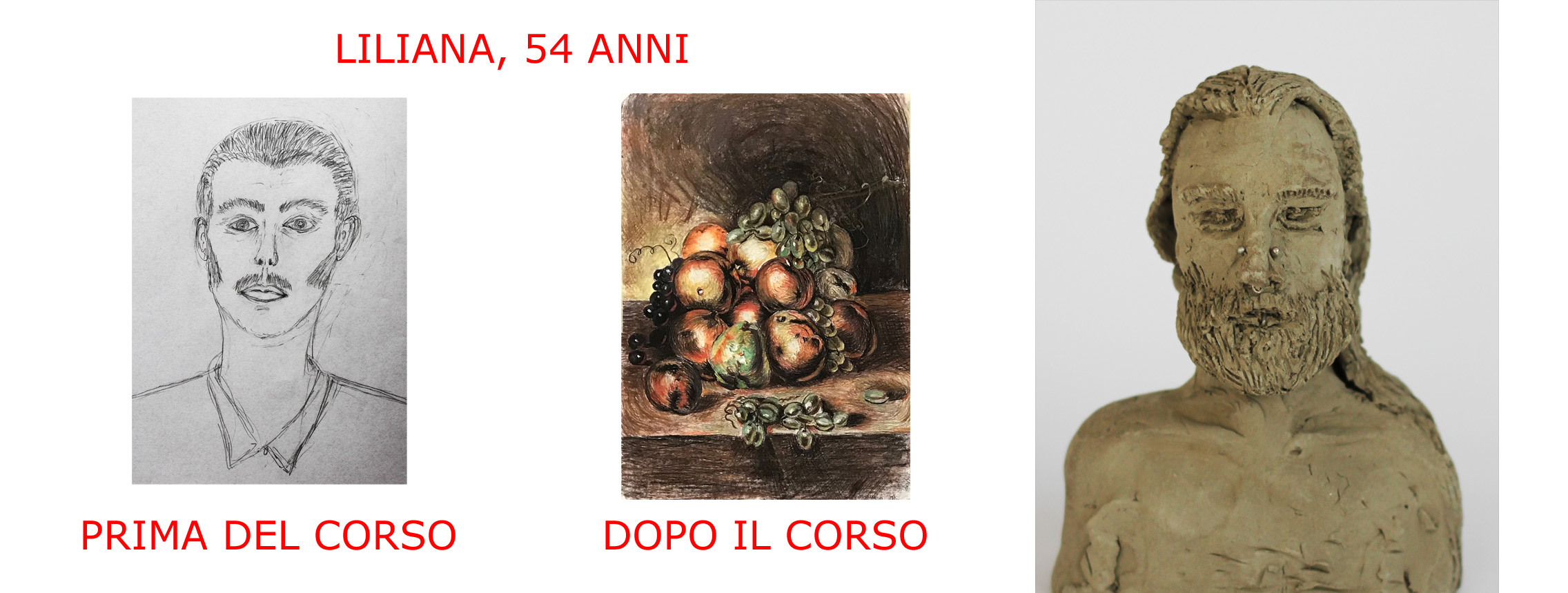 Una foto dei progressi dell'allieva Liliana Paolicelli e una scultura di sua figlia Francesca alla quale è dedicata la mostra