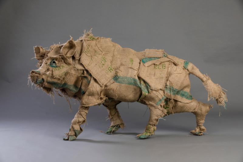 Massarutto racconta il contemporaneo con le sue installazioni di animali come al museo Bego tra i tabernacoli viari di Benozzo Gozzoli gli animali del bosco coperti da frammenti di juta dialogano tra passato e presente come pellegrini della Via Francigena. Di fronte al Museo due imponenti e maestosi orsi polari ci ricordano la fragilità del nostro vivere contemporaneo. Fuori dalla stazione dei treni e per le vie del borgo, freneticamente gruppi di cinghiali corrono sui muri inseguendo un inarrivabile stile di vita al ritmo del consumismo. Sulla terrazza del Teatro del Popolo si ferma il grande rinoceronte come ad osservare interdetto lo svolgersi quotidiano della città. Alla Pieve di Sant’Ippolito un piccolo gregge di pecore pascola tranquillo. Siamo noi. Ci sentiamo al sicuro protetti da una rete invisibile mentre un lupo osserva la scena. Non sappiamo cosa rappresenti veramente il lupo e quali siano i suoi intenti, ma la sua presenza è tangibile per il gregge. Nuove paure contemporanee. In questa fusione reale tra mondo umano e mondo animale, Massarutto vuole mettere in discussione il nostro status di homo sapiens, attraverso il punto di vista rovesciato dei suoi “animali”, mostrandoci che l’essere umano è portato a guardare sempre a nuovi orizzonti. E mentre questo accade, un cane vede e fiuta a terra l’immondizia ai nostri sensi indistinta e disgustosa, che diventa per il fiuto dello stesso un “paese delle meraviglie”.