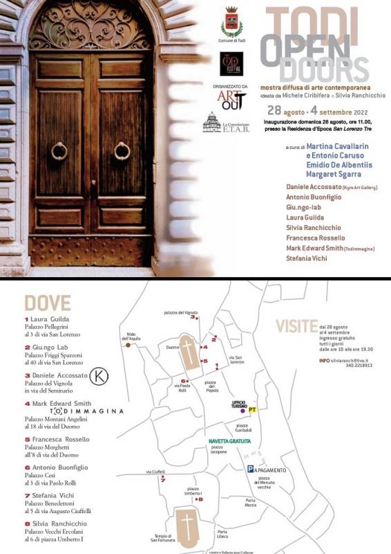 Inaugurerà domenica 28 agosto 2022, alle ore 11.00 nella cornice della suggestiva Residenza d’Epoca San Lorenzo Tre, nel centro storico di Todi, la quarta edizione di “Todi Open Doors”, una mostra d’arte contemporanea diffusa, allestita negli androni dei palazzi storici della città umbra.