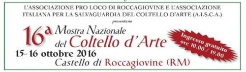 Sabato 15 e Domenica 16 Ottobre 2016 si terrà al castello di Roccagiovine la 16^ edizione della Mostra Nazionale del Coltello d'Arte, in concomitanza della Sagra della Castagna.