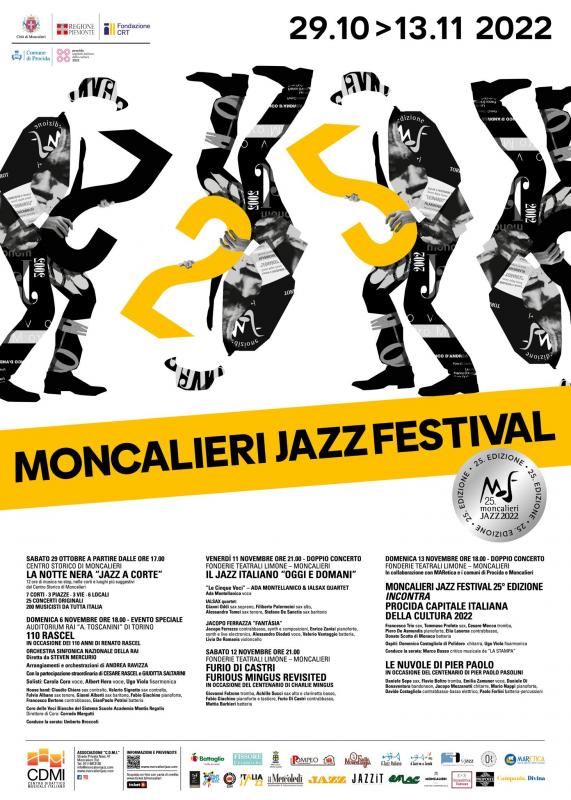 Come da tradizione, Moncalieri Jazz celebrerà anche alcune ricorrenze simbolo: quest’anno, in particolare, si ricorderanno i cento anni della nascita di due autentici giganti del Novecento: Charles Mingus e Pier Paolo Pasolini, due artisti diversi tra loro sia per estrazione culturale e sociale sia per la tipologia di linguaggio espressivo, eppure legati dalla ricerca della verità, nella spontaneità, nel rapporto sincero con se stessi e con gli altri, nella condivisione delle diversità. Il musicista e compositore jazz statunitense verrà omaggiato il 12 novembre col progetto Furio Di Castri – Furious Mingus Revisited, con Furio Di Castri al contrabbasso, Giovanni Falzone alla tromba, Achille Succi al sax alto e clarinetto basso, Fabio Giachino pianoforte e Mattia Barbieri alla batteria. Il tributo a Pasolini, Le Nuvole di Pier Paolo, vedrà invece salire sul palco, il 13 novembre, una formazione formidabile composta da Daniele Sepe sax, Flavio Boltro tromba, Emilia Zamuner voce, Daniele di Bonaventura bandoneon, Jacopo Mezzanotti chitarre, Mario Nappi pianoforte, Davide Costagliola contrabbasso e basso elettrico e Paolo Forlini batteria e percussioni.