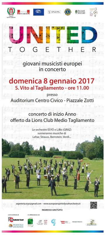 L’orchestra di settanta elementi, tutti giovani musicisti selezionati a livello europeo, si esibirà in Auditorium Comunale a San Vito al Tagliamento Domenica 8 gennaio 2017 alle ore 11.00