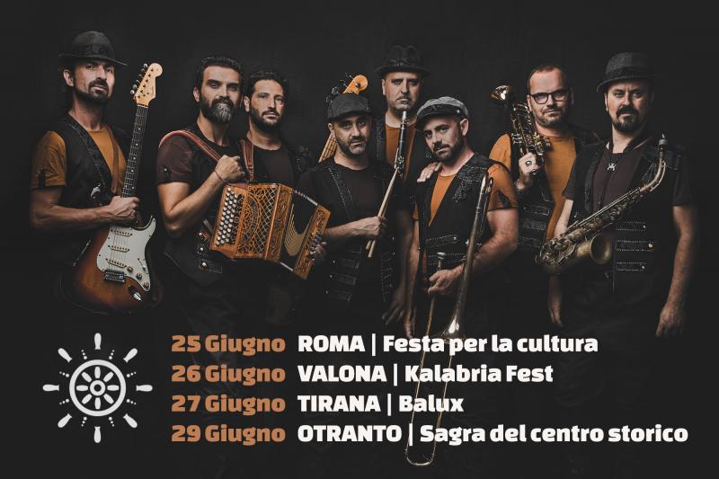 Si parte da Roma il 25 Giugno con la Festa Per la Cultura, per poi tornare in Albania, terra d'elezione della Bandadriatica, per due concerti che si preannunciano infuocati: il 26 Giugno a Valona per il Kalabria Fest e il 27 Giugno al Balux di Tirana, nel pieno centro della capitale.