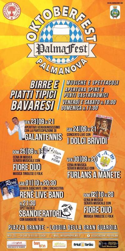 L'Associazione Pro Palma - Pro Loco di Palmanova organizza per il secondo anno consecutivo il nuovo evento che mette al centro birre e piatti tipici bavaresi direttamente dall'austria, musica e spettacoli per ogni serata.