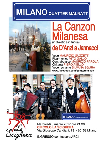 Serata all’insegna della nostalgia della vecchia Milano presso il popolare circolo ARCI La Scighera, con l’esibizione dei QUATTER MALNATT, quartetto meneghino che propone le musiche nate all'ombra della Madonnina.