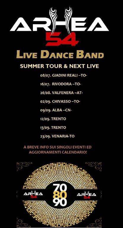 ARHEA 54 è la GLAM COVER BAND DISCO 70 torinese in attività da oltre 6 anni con all’attivo più di 300 concerti.