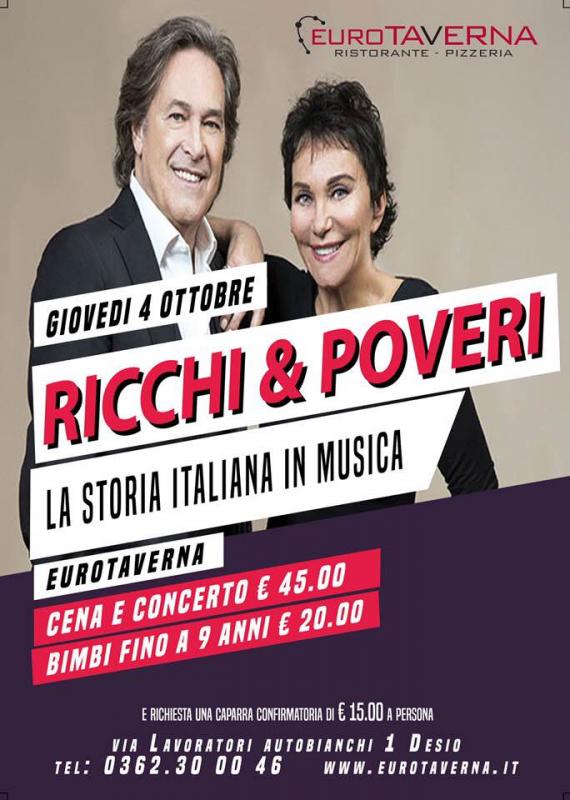 I Ricchi e Poveri con Angela e Angelo si esibiranno live per una serata unica e sorprendente incantando tutti noi con i più grandi successi di un gruppo che ha fatto la storia della musica italiana
