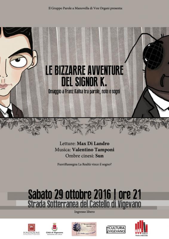 Il secondo appuntamento è per sabato 29 ottobre, sempre alle 21, nella Strada Sotterranea del Castello di Vigevano. In occasione degli eventi legati a “La realtà vince il sogno?”, rassegna letteraria di Vigevano per il 2016, Vox Organi presenta “Le bizzarre avventure del signor K.” , un