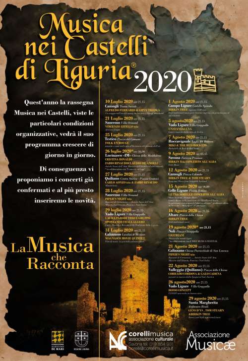 In Liguria si svolge nei giorni dal 10 Luglio al 29 Agosto 2020 la 30a edizione di Musica nei Castelli di Liguria.
