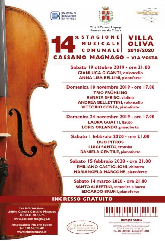 nei mesi di febbraio e marzo riprenderanno i concerti della 14^ edizione della Stagione Musicale Comunale "Villa Oliva" di Cassano Magnago: