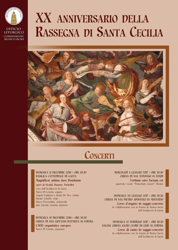 Nel ventennale della Rassegna diocesana di Santa Cecilia, l’Ufficio Liturgico dell’arcidiocesi di Gaeta e la Commissione di Musica Sacra promuovono cinque concerti celebrativi di musica sacra nelle diverse foranie del territorio diocesano.