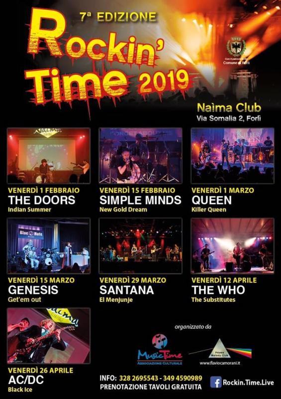 La settima edizione di Rockin’ Time, con il Patrocinio dell'Assessorato alla Cultura del Comune di Forlì, anche quest’anno si svolgerà presso lo storico Locale Naìma Club - Taverna Verde di via Somalia n.2 e punterà principalmente sul Rock anni '60 e '70 delle origini con sfumature progressive-psichedeliche.