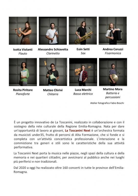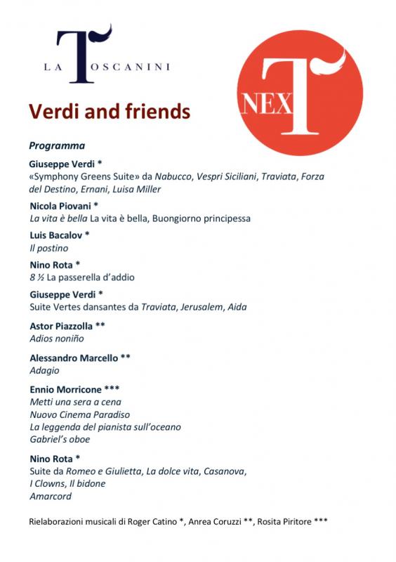 La Toscanini Next, con il programma “Verdi and friends” (vedi allegato), ci offrirà un momento musicale intenso per l’eccellenza e la varietà delle esecuzioni, frutto di ricerca, di studio e della passione che la giovane età concede loro.