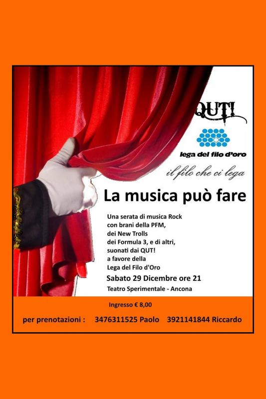 Al Teatro Sperimentale di Ancona si svolge nella giornata di Sabato 29 Dicembre 2018 il concerto dei Qut a favore della Lega del Filo d'Oro, "il filo che ci lega".