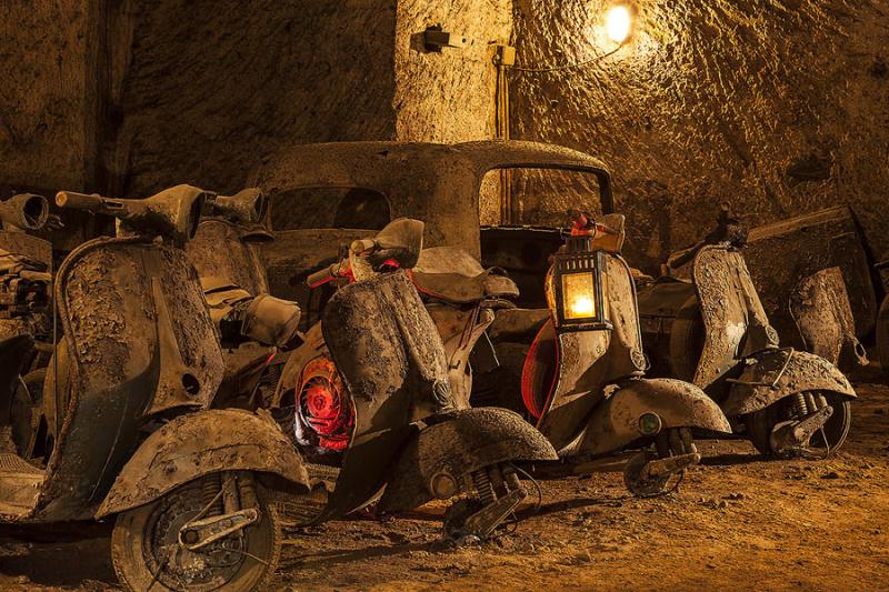 L'antro da cui cominciare questo viaggio nel "Ventre di Napoli" è quello che dà accesso a questo traforo sotterraneo commissionato nel 1853 da Ferdinando II di Borbone all'architetto Errico Alvino, una galleria che collegasse il Largo della Reggia (odierna Piazza Plebiscito) a piazza della Vittoria, passando al di sotto della collina di Pizzofalcone.. Il percorso, nel secolo successivo, fu abbandonato, fino a quando durante la Seconda Guerra Mondiale alcuni ambienti sotterranei furono adoperati e allestiti come rifugio antiaereo dal Genio Militare, elettrificati e forniti di brandine, arnesi da cucina e una serie di latrine. Nel ricovero antiaereo infatti poteva accadere che i napoletani rimanessero anche per molti giorni. Nel dopoguerra fino agli anni settanta fu adibito a deposito giudiziario comunale dove fu ricoverato vario materiale. Durante il percorso i visitatori potranno ammirare, quale suggestiva cornice, frammenti di statue, ed auto e moto d’epoca ritrovate sepolte sotto rifiuti e detriti ed oggi resi nuovamente accessibili alla conoscenza grazie al lavoro svolto dal presidente dell’Associazione Borbonica, Gianluca Minin che nel corso del tempo, con l'aiuto di guide esperte e numerosi volontari, hanno proceduto all'operazione di scavi e pulizia del sottosuolo napoletano.