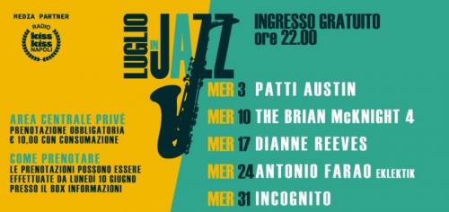 Luglio in jazz è un appuntamento consolidato nel panorama musicale italiano. Negli anni sul Palco di Piazza Campania si sono esibiti artisti di fama mondiale accompagnati da strumentisti di grandissimo livello.