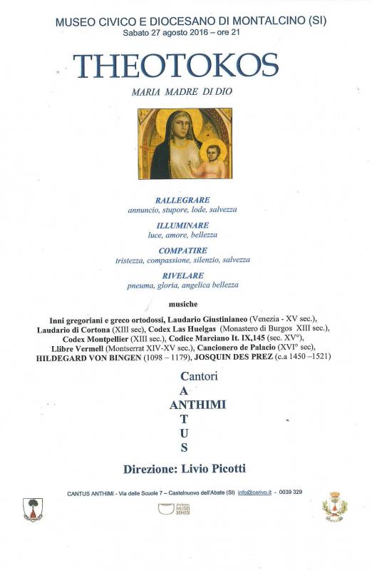 Sabato 27 agosto 2016 ore 21.00 i Canti Gregoriani animeranno il Museo Civico e Diocesano di Montalcino con il Coro Cantus Anthimi sotto la Direzione del Maestro Livio Picotti.
