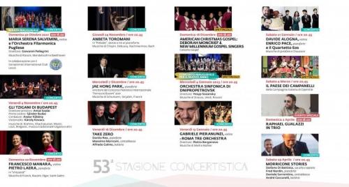 Primo appuntamento stagionale domenica 30 ottobre alle ore 18: una inaugurazione nel segno della valorizzazione delle eccellenze del territorio, in compagnia dell'Orchestra Filarmonica Pugliese diretta per l'occasione dal M° Giovanni Pellegrini. Sul palco del teatro leccese anche uno degli astri nascenti della musica classica italiana, la violinista diciassettenne Maria Serena Salvemini. Il concerto è realizzato in collaborazione con l'interclub di Puglia e Basilicata del Soroptimist International Club d’Italia, con il club di Lecce capofila del progetto.